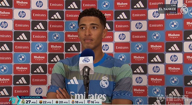 以一传一射的出色表现助力皇马在国家德比中2-1力克巴萨后,贝林厄姆在俱乐部官网接受了采访,并在社交媒体上巧妙回应了对手亚马尔:“空谈无益。皇马永存。”(Talk is cheap. Hala Madrid siempre.)